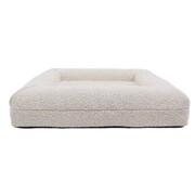From what started as furniture is now making a hit inour pet beds.Bouclé is having a major moment inhome aesthetics for decor obsessed individuals featuring soft tones of white or cream, creating a clean modern addition to your home and pets space.What is bouclé?French for ‘curl’, Bouclé is both yarn and an upholstery fabric made from it. The textile is characterised by its lumpy, knobblyappearance from the little loops in the yarn.Modern design with benefits for your pet:The benefits of memory foam beds are a great choice for pets with joint issues related to injury or old age. Despite it’s main focus of support with physical condition, ourMemory Foam Dog Beds are great for all dogs from puppies through to seniors, ensuring a fantastic and comfy sleep for all walks of life.The Features:Premium Durable QualityNon slip bottomL shaped zipper for easy openingWaterproof foam cover liningFour side zipper for easy cleaning for both bed lining, bolster lining and boucle coverBolster support for chin restAvailable in Medium LargeCover Care:Set the washing machine to the gentle or delicate cycle. (lukewarm or cold wash)Air dry covers inside out (avoid dryer machine)Sizing Guide:Medium 94cm x 74cm x 17.5cm (Internal: 62cm x 42cm)Large 115cm x 90cm x 17.5cm (Internal: 83cm x 58cm)