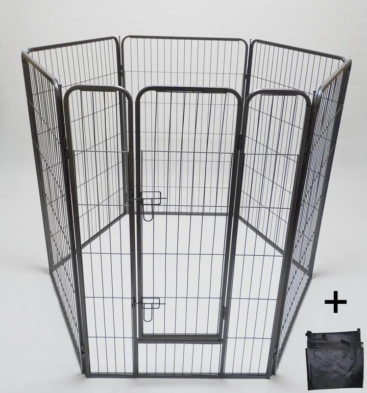 YES4PETS 6 Panel 120 cm Heavy Duty Pet Dog Cat Rabbit Playpen Fence With CoverGive your pet a safe and secure play area with this 6-panel playpen. It features a foldable design offering maximum convenience when storing and transporting and allows you to configure the playpen to the desired shape. Easy to set up, store and transport, it’s a hassle-free purchase.Features:Multi-configuration with 6separate panelsRound edges designed for added safety for your puppySteel frames withpowder-coated finishEasy storage transportationQuick set-up without toolsEasy linking flat packedDouble bolt Latches for easy to open the doorSGS-approved and suitable for a variety of petsSpecification:Colour: Silver mixedblackMaterial:Steel FrameFinishing: Powder CoatedPanel size:120cm (H) x 76cm (W)Playpen dimension: variesWeight: about 20KgBar distance: about 3.5 cmPlease note : (1) There may be a 2-3 cm difference in measurements depending on how the item is measured and workmanship.(2) Not intended for use on a rainy day. Water may cause rust and the rust is not covered by a warranty. (3)Due to the size and weight, the item might not be able to be delivered to your home address, and you have to pick it up from the courier depot near you. Please reach out for details.COM (change of mind) Return Policy:Products must be returned within 14 days from the date of delivery.The product must be unopened and in brand new condition, with the return to be organised by the customer. Once received and verified to be in the condition specified, refund is only of the item value minus 15% restocking fee (not including initial shipping). An additional return charge, which is same or exceeding cost as that of initial shipping, will be deducted from the refund on returns due to delivery failure caused by customer error.