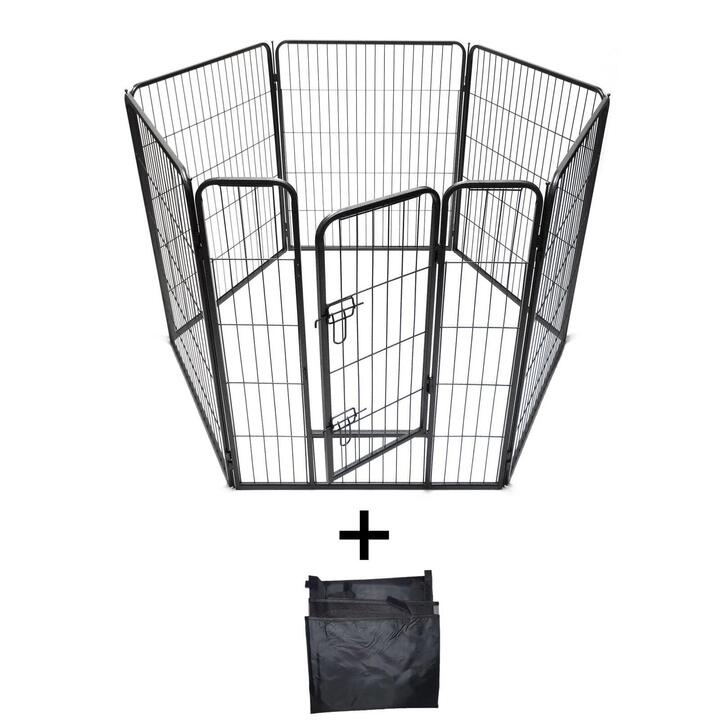 YES4PETS 6 Panels 100 cm Heavy Duty Pet Dog Cat Puppy Rabbit Exercise Playpen Fence Extension With CoverGive your pet a safe and secure play area with this 6-panel playpen. It features a foldable design offering maximum convenience when storing and transporting and allows you to configure the playpen to the desired shape. Easy to set up, store and transport, it’s a hassle-free purchase.Features:Multi-configuration with 6separate panelsRound edges designed for added safety for your puppySteel frames withpowder-coated finishEasy storage transportationQuick set-up without toolsEasy linking flat packedDouble bolt Latches for easy to open the doorSGS-approved and suitable for a variety of petsSpecifications:Colour: Silver mixedblackMaterial:Steel FrameFinishing: Powder CoatedPanel size: about100cm (H) x 80cm (W)Playpen dimension: variesWeight: about 18KgBar distance: about 3.5 cmPackage Contents:1 x Door Panel5 x Panels6 x Pins1 X coverPlease note : (1) There may be a 2-3 cm difference in measurements depending on how the item is measured and workmanship.(2) Not intended for use on a rainy day. Water may cause rust and the rust is not covered by a warranty.COM (change of mind) Return Policy:Products must be returned within 14 days from the date of delivery.The product must be unopened and in brand new condition, with the return to be organised by the customer. Once received and verified to be in the condition specified, refund is only of the item value minus 15% restocking fee (not including initial shipping). An additional return charge, which is same or exceeding cost as that of initial shipping, will be deducted from the refund on returns due to delivery failure caused by customer error.