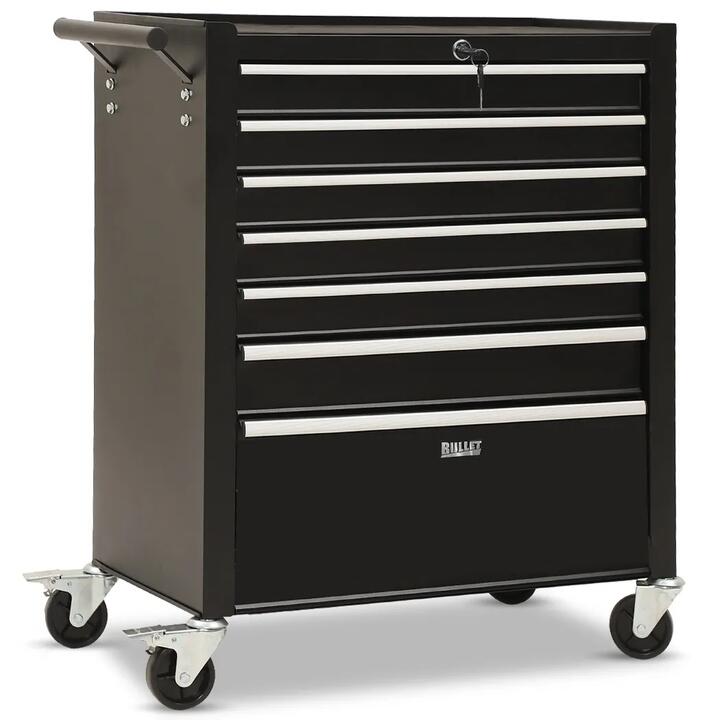 BULLET PRO 7 Drawer Tool Box Cabinet Trolley Storage, Toolbox Garage Organiser Set, Black