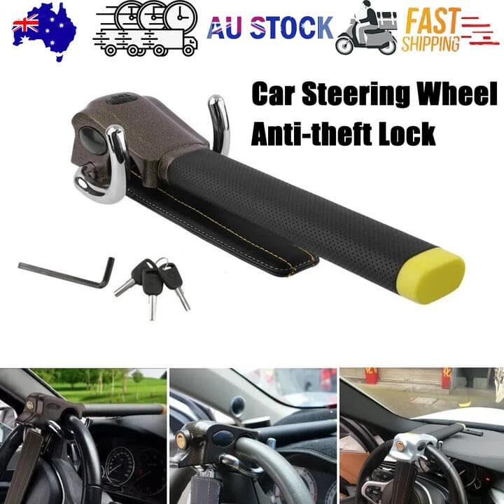 Product Description Material: alloy + carburized steel + (PVC) Polyvinyl Chloride Color: brown and black Size: 40x10x6cm Features: Unique shape, beautiful and generous The use of high-quality lock core, anti-drilling, tamper, a new type of practical, twist lock, convenient and quick Using steel carburizing heat treatment, anti-saw, shear Double hook 360 ° rotary button design, multi-tooth adjustable A lock three, anti-theft, self-defense, broken window Application: suitable for most models, cars How to use? (Instructions) When using this lock for the first time, use the supplied hex wrench to adjust the screw to the airbag 1. Start the car and adjust the steering wheel 2. Raise the lock until the direction is locked Package include: 1 x anti-theft lock 3 x keys 1 x hex wrenchNOTE:PO BOX address is not supported, please provide the correct physical addressATTENTION:If the customer change their mind and want to cancel the order, please contact us within 2-3 hours after placing the order. Or, once the package is dispatched, we wont be able to intercept packages in transit. Please understand.Refund note: Only return the product cost, not refund the freight!!!Tip:Due to the high freight costs in some areas, there may be additional charges. Thank you for your understanding.