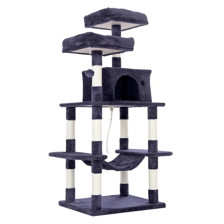 Paw Mate Cat Tree Sisal Scratching Post 145cm WHISKY Scratcher Pole Condo House Tower – GreyMeow there! Are you tired of cluttering your home with cat toys and furniture? Are you on the hunt for the purrfect cat playground for your furry friends? Look no further than the Paw Mat cat tree!Our cat tree offers a multi-level, sturdy construction with various features that will keep your frisky cats entertained for hours. From climbing to leaping, scratching to hunting, and playing to resting, our cat tree has everything your cat needs in one place.To satisfy your cat’s natural instincts and keep your furniture intact, our cat tree comes with durable sisal-wrapped posts to heal your cat’s scratching urge and fluffy pom-poms to acquire their thrill of hunting.Unlike other cat trees that may have hard surfaces that make it uncomfortable for cats to grip and relax, our cat tree has a soft and plush surface around the cat cube, top perch, and hammock. Your cats can easily dig their claws in and climb up without slipping. They can also find multiple cozy spots to lounge and snooze.Our cat tree is not only functional but also aesthetically pleasing, blending in with any home decor. It’s also a great addition to cat cafes, providing a stimulating environment for your feline customers while adding to the ambiance of the space.Invest in our cat tree and give your cat the ultimate feline paradise they deserve. Don’t settle for anything less than the best.Product Features:Multi-level construction for fun and rest145cm high cat treeSturdy and durable designCozy top perch surrounded by thick cushionsSisal-wrapped postsSoft and plush surfaceNon-toxic materialsFluffy pom-poms provide entertainmentComplements any home decor, cat cafe, and foster care ambianceComes with hanging toy balls, roomy condo, and spacious hammockProduct Included:1x Cat Tree1x Assembly GuideProduct Specification:Brand: Paw MateModel: WhiskyColour: GreyMaterial: Plush Covering / SisalMax Height: 145cmOverall Dimensions: 145cm(H) x 60cm(L) x 50cm(W)Weight: 14.8kg