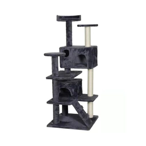 “High quality and durable cat scratching tree for your purrfectly cute cats.”CATIO Abstract Deluxe Chipboard Flannel Scratching Cat Tree 127cm is the perfect way to keep your cats entertained while satisfying their natural scratching instincts. With three different scratching surfaces, your cat will have plenty of options to scratch and mark their territory. Not only is this tree stylish and functional, but it’s also a great way for you and your cat to spend some quality time together. The soft platforms are perfect for playing or taking a nap in the sun. And when you’re not using it, the tree can be easily folded up and stored away until next time.Benefits and Features:Deluxe cat tree is made with a plush fabric that feels luxuriously soft and has a swanky, velvety look.Stands 127cm tall.Includes condo, 3 top perches.This cat tree has all your kittys needs covered by providing cosy spots to relax in, hideouts to retreat to at their leisure, scratching and perching opportunities, and playtime fun.Cats love all the different heights to climb up to, as well as scratching on the sisal rope to keep nails healthy and get in a good stretch.The plush material in dark hues is designed with your home décor in mind.Perfect for single cat or multi-cat homes.Directions for Use:Make sure to check the measurements if it fits just right in your home.Location of your tree matters. Make sure to have enough space for the Cat Tree/Tower.Product Dimension (LxWxH): 50x50x127cmBrand: CATIO (Cats)Im-paw-tant!You can find the perfect spot for your cat’s tree by checking where they usually like to play, rest and watch over their territory. It is best if you install it in an open space with lots of visibility from multiple angles because this will allow them access into other areas throughout the house such as near windows or doors that lead out into rooms. A location that offers optimal viewing opportunities while still remaining close enough without being too cluttered.CATIO Abstract Deluxe Chipboard Flannel 127cm is a stylish cat tree that manages to be functional against the backdrop of modern life while simultaneously serving as an eye-catching centrepiece in any home. Cat scratching tree made of high-quality chipboard and jute-twine for your furry feline to scratch the day away. The interactive tree for cats features multiple perches, blocks, a tangle of jute-twine, and boasts cat-friendly constructions that are certain to give your feline friend plenty of playing space they’ll love.