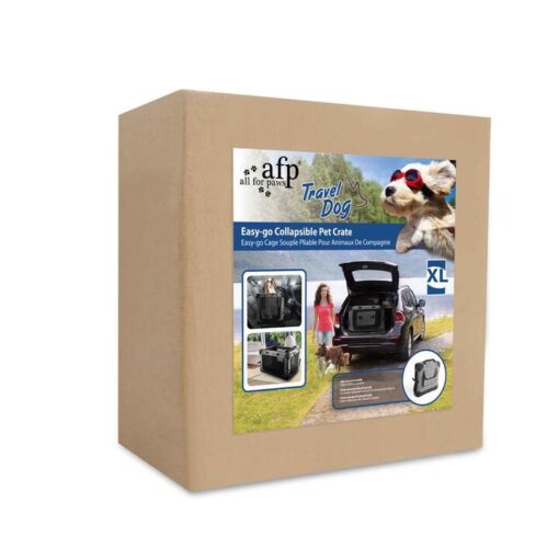 Keepcar travel easywith the Easy-Go Collapsible Pet Crate by All For Paws.Transportation and car trips will be cozy and comfortable for your dog or cat, with thissoft and collapsible travel crate. It features mesh walls for air circulation and an easy to clean base matinsert, withside storage pockets to ensure that you will never forget your pets favourite treats and toys.Light weight and easy to assemble portable soft pet crate, that folds and buckles for easy storage and features handles for your convenience.Constructed with strong and quality material, rest assured that your pet will be safe and secure, whilst travelling, resting or in between trips.Features:Portable and foldableLight weight and easy to assembleMesh walls for circulationStrong construction for pet safetyReinforced corners to prevent frayingStorage side pocketsSoft and durable quality fabricWaterproofHas handles for portabilityRemovable and washable mat insertSpecifications:Size: XLColour: GreyDimensions (Cm): 97L x 67 W x 67 HWeight: 6.1 kgMaterial: 600D polyesterPackage Includes:X-Large Easy-Go Collapsible Pet Crate by All For Paws.