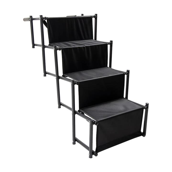 If your dog struggles to get into your car, don’t leave him or her behind when you travel. Senior dogs, as well as tiny breeds, especially have difficulty jumping up into your vehicle. Make it easier for your pups with this set of folding steps from Randy Travis Machinery. No more strain on your back or your dogs’ joints. Just an easy climb up the stairs into your car. Folded, they’re compact and easy to store at home, in the garage, or stowed away in the boot of your car. They even come with a handle, making them easy to carry along when travelling.Since cars and other vehicles don’t come in standard heights, you can adjust these steps for vehicles of any height. Designed for safety, these steps come with a safety tether that attaches to your boot latch with a carabiner clip. That’s not all. The supporting structure for these steps has anti-skid rubber feet, and each step features anti-slip. These steps don’t just protect your pets, though. These steps work well with dogs of a broad range of sizes, from toy breeds to extra-large dogs up to 100 pounds. Before your next trip, do your dog a favour and order these steps today!Features and specifications:Material: Metal, rubber feet, and anti-skid embossingColour: BlackWidth: 44cmDimensions (high angle): 101 x 76cm (L x H), with an 22.5cm step riseFits dogs of all sizes, up to 35kgFolds up into a compact form for easy storageHandle for carryingUse indoors or outdoorsExtra wide to accommodate larger dogsEasy to clean and maintain just wipe, fold, and storeAnti-slip stepsAnti-skid rubber feetSafety tether secures the steps in placeFold and store in mere secondsStrong yet light in weightNote: COM (change of mind) Return Policy: The product must be unopened and in brand new condition, with the return to be organised by the customer. Once received and verified to be in the condition specified, refund is only of the item value minus 15% restocking fee (not including initial shipping). An additional return charge, which is same cost as that of initial shipping, will be deducted from the refund on returns due to delivery failure caused by customer error. For the health and safety of our staff and other customers, we are unable to accept returns of personal use items.