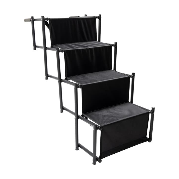 If your dog struggles to get into your car, don’t leave him or her behind when you travel. Senior dogs, as well as tiny breeds, especially have difficulty jumping up into your vehicle. Make it easier for your pups with this set of folding steps from Randy Travis Machinery. No more strain on your back or your dogs’ joints. Just an easy climb up the stairs into your car. Folded, they’re compact and easy to store at home, in the garage, or stowed away in the boot of your car. They even come with a handle, making them easy to carry along when travelling.Since cars and other vehicles don’t come in standard heights, you can adjust these steps for vehicles of any height. Designed for safety, these steps come with a safety tether that attaches to your boot latch with a carabiner clip. That’s not all. The supporting structure for these steps has anti-skid rubber feet, and each step features anti-slip. These steps don’t just protect your pets, though. These steps work well with dogs of a broad range of sizes, from toy breeds to extra-large dogs up to 100 pounds. Before your next trip, do your dog a favour and order these steps today!Features and specifications:Material: Metal, rubber feet, and anti-skid embossingColour: BlackWidth: 44cmDimensions (high angle): 101 x 76cm (L x H), with an 22.5cm step riseFits dogs of all sizesFolds up into a compact form for easy storageHandle for carryingUse indoors or outdoorsExtra wide to accommodate larger dogsEasy to clean and maintain just wipe, fold, and storeAnti-slip stepsAnti-skid rubber feetSafety tether secures the steps in placeFold and store in mere secondsStrong yet light in weightNote: COM (change of mind) Return Policy: The product must be unopened and in brand new condition, with the return to be organised by the customer. Once received and verified to be in the condition specified, refund is only of the item value minus 15% restocking fee (not including initial shipping). An additional return charge, which is same cost as that of initial shipping, will be deducted from the refund on returns due to delivery failure caused by customer error. For the health and safety of our staff and other customers, we are unable to accept returns of personal use items.