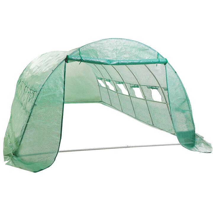 Home Ready Greenhouse Walk-In Shed PE Dome Hoop Tunnel Polytunnel 6x3x2MThis Home Ready Large Walk-In Steel Frame Arc Roof Greenhouse is a great asset for your project on growing plants, vegetables, or propagating for all year round! This strong and convenient green house will allow you to carry on your project throughout the year. It is ideal for medium to large-scale growing projects. It is very easy to assemble and most importantly, no tools are required! Your plants will be just in the right environment in order to produce the best results!The galvanised steel frame is light and strong and this will help keep it from rusting due to weather exposure. Designed with frames which is well balance in order to stand strong when facing rain and wind.The cover is made of high-quality UV resistant PE mesh is great to allow light inside the greenhouse and combined with the arc roof, it retains the warmth inside very efficiently. The easy roll-up windows on the sides allow you to control the temperature inside the greenhouse easily, and this temperature control is very important to provide the best environment to your plants, especially if they are sensitive to temperature.It comes with easy-roll up doors with dual zippers so you can carry larger plants and pots easily inside the greenhouse. The structural design of this greenhouse ensures optimum and even ventilation inside. This will increase the overall quality of your growth.It is also an excellent solution to protect your plants from the weather and also from bugs, insects, possums, mice, birds, your neighbours’ cats and many other wild animals!*Please note that this greenhouse certainly needs some pegs and weights in order to be able to withstand strong winds (Pegs included but weights not included in this package). Assemble by 2 people is recommended. It is ideal to place your greenhouse in a position that provides afternoon shade, good drainage, and is as sheltered from strong wind/storm.Product Features:High quality and strong steel frameWater-proof and weather-proofTear and UV resistant PE mesh coverEasy-roll up door with dual zippersEasy installationVentilation windowsPegs and straps includedNo extra tools neededIdeal to protect your plants and vegetables from bugs, insects, possums, mice, birds and many other wild animalsProduct Included:1x Greenhouse1x Assembly ManualProduct Specification:Brand: Home ReadyColour: Green and clearFrame Material: Galvanised steelCover Material: UV treated mesh PERoof Shape: Dome/arcAssembled Dimensions (L x W x H): 600 x 300 x 200cmWeight: 34kg