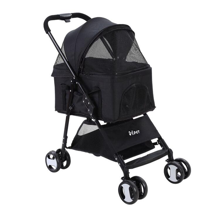 Need to take your small pet out for a walk with minimum hassle? You can, with the i.Pet Pet Stroller. It is sturdy, well-made, comfortable and comes with a host of pet-friendly features. In fact, the stroller has a 3-in-1 function as a stroller, carrier and car seat that makes transporting your pet easily and hassle-free. Better still, the stroller can also be separated into two sections for easy storage. The frame features powder-coated steel for strength and lasting use and the 600D Oxford is breathable and washable too. The front veil can be adjusted for easy access and also includes a zipped mesh cover. Moving and manoeuvring the stroller is effortless with its 5.5” wear-resistant EVA wheels that are lockable with the rear wheels and omni-directional front wheels. Not least, the stroller can opened and kept with a simple one-step fold operation.Features One-step fold Catch hook Adjustable front veil Large space basket Anti-slip foam handle 360 rotatable front wheels Rear wheels with damping Wear-resistant EVA wheels Powder-coated steel frame 600D Oxford fabric Machine washable and detachable insert Rear brakes Waterproof Removable cushionSpecifications: Frame material: Steel Tube thickness: 0.8 mm Surface: Powder-coated Fabric material: 600D Oxford Wheel material: EVA Wheel size: 5.5 Product overall size: 84cm x 48cm x 99cm Pet cage size: 57cm x 38cm x 60cm Weight capacity: