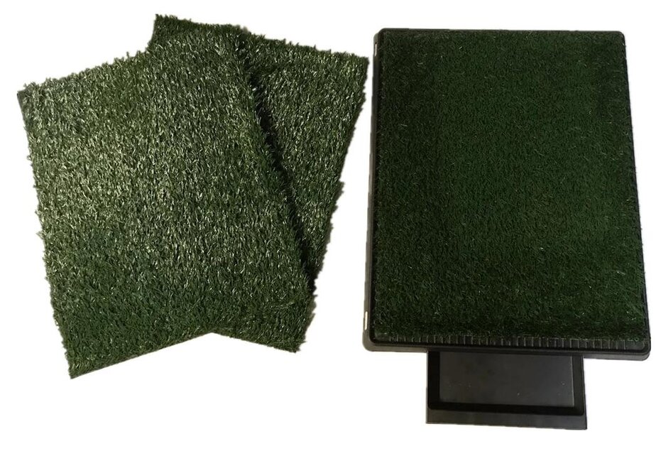 Indoor Dog Toilet Grass Potty Training Mat Loo Pad pad with 3 grass Keep your pet comfortable and your floors and carpets clean! The pet potty is the unique solution for pet accident free living. Perfect for times when you’re late coming home to let the dog out, or unable to let your pet outside due to bad weather. Ideal as a training tool for you puppy, it’s also great in assisting an older dog that might be unable to go to the bathroom outside. Pet potty is made of a synthetic grass material that looks and feels real. It is weather proof. Pet potty is non-toxic and is safe to use around your pet. Easy to clean, just wash in warm soapy water. The pet potty prevents pet accidents by giving your dog a designated place to urinate instead of using your carpet or furniture. The tray can hold an entire gallon of liquid simply empty the collection tray at the end of the day. Pet potty’s reusable surface stays fresh and sanitary. It rinses clean and stores easily. Now, you don’t have to spend lots of money on expensive dog walkers or messy wee wee pads. With Pet potty, you’ll be happy your dog went in the house ! pet park deluxe 3-piece dog relief toilet: Grid tray: drains grass mat, keeping it away from urine. Grass Mat: Non-toxic synthetic grass; Looks and feels real. Removable waste tray: collects urine; keeps grass mat dry. Features: Easy to clean Removable Waste Tray Ideal for toilet training Non-Toxic: Safe to Use at Home pet park deluxe 3-piece dog relief toilet perfect for use indoors, porches patios Overall size: about 63 cm x 51 cm x 7 cm. Contents: Indoor Pet Potty 3 x Grass Mat