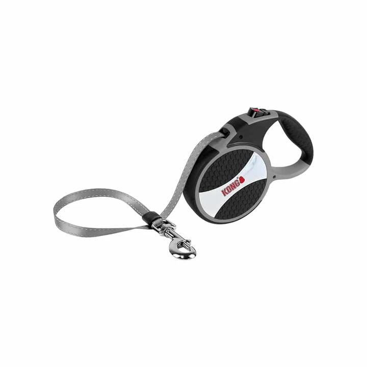 Product DescriptionTake your furry friend on the adventure of a lifetime with our KONG Gray ExploreRetractable Dog Leash! With a whopping 24ft of freedom, your pooch can roam and exploreto their heart’s content.Benefits and FeaturesAvailable in multiple sizes for the ideal fit.This leash has a soft grip handle making it super comfortable to use (evenfor those long walks!)Extends to 7.5m which is a comfortable length allowing your pup to roamaround freely whilst also giving you the ability to control and lock the leashas requiredEasily brake and lock when the moment arises.It’s also designed with color-coordinated, wide tape with reflectivestitching to help keep your pup safe and visible