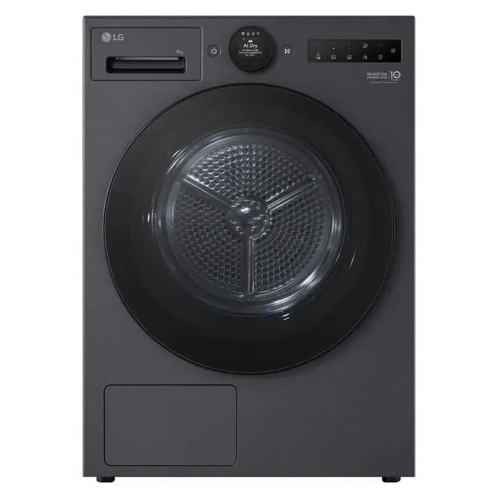 The LG 9kg Series 9 AI Heat Pump Dryer – Matte Black delivers smart, efficient drying with a bold modern finish to suit any laundry. Using AI Dry technology, it analyses fabric types and moisture levels to adjust drying time and temperature for the best results while protecting your clothes. The clear LCD display makes settings easy to navigate, and the auto-cleaning condenser maintains peak performance with minimal effort. A reversible door gives you flexibility when fitting the dryer into your space, while the inverter motor ensures quiet, reliable operation built to last. With load sensing technology, the machine adapts to the size of each load, saving time and energy, and the handy delay timer allows you to schedule drying when it suits you best. Combining convenience, style, and energy efficiency, this 9kg heat pump dryer is a smart choice for modern households.