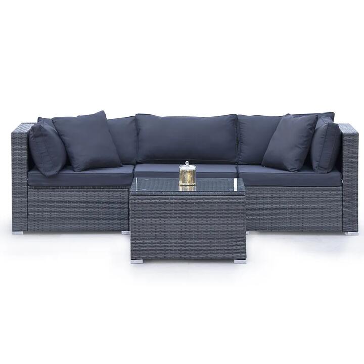 LONDON RATTAN 4 Piece 3 Seater Modular Outdoor Lounge Setting incl. Coffee Table, Grey