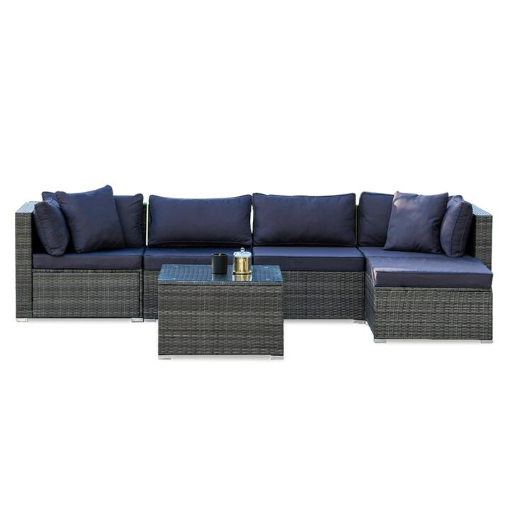 LONDON RATTAN 5 Seater Modular Outdoor Lounge Setting with Coffee Table, Ottoman, Grey