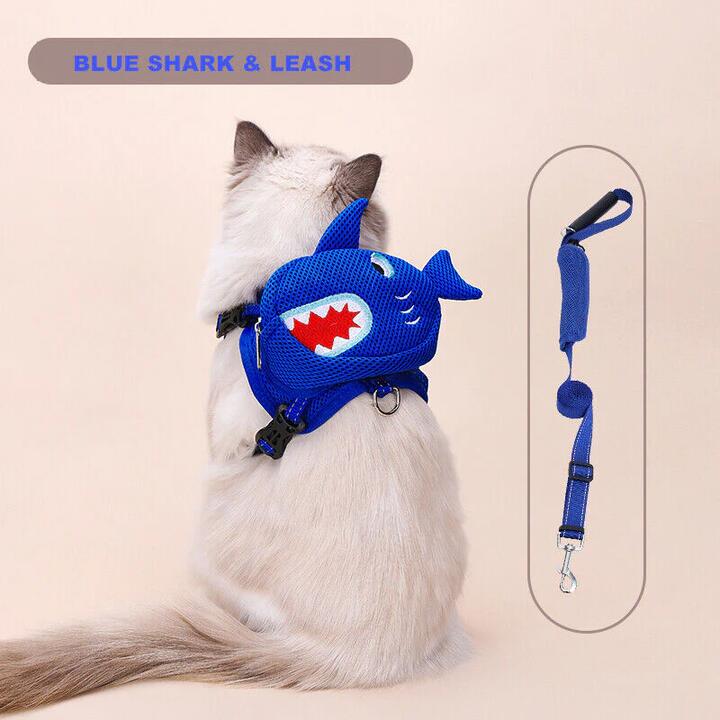 Ondoing Pet Saddle Bag Dog Harness Backpack Hiking Traveling Outdoor Bags Cute Costume (Blue shark bag with leash)XS