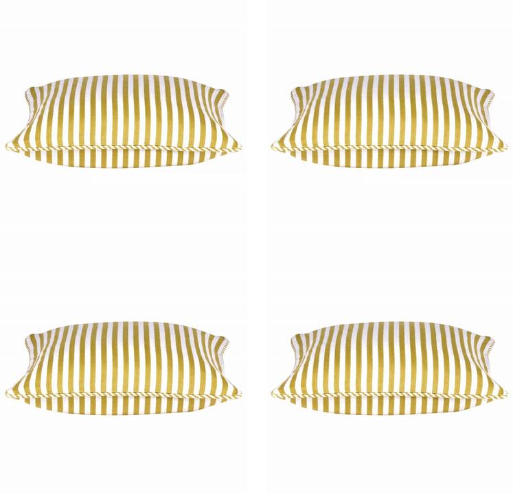 Select the right cushion covers and throws to decorate your home, either with contemporary, funky, retro or modern designs. Add texture, colour, size and shape to give your home an individual and hand selected designer look. These can be used in lounge rooms, bedrooms, caravans, a man cave, and kid’s bedrooms or anywhere you want to add some style. Even great as gifts for birthdays and Christmas.Features:Description: Pack of 4 Dandi mustard cushion coverShape: SquareStyle: beach, nautical, fresh, stripedColour: Mustard / yellow and white.Material: CottonSize: 40cm x 40cmClosure: ZipperUses: Lounge, chair, bed, caravan or scatter cushion coverProduct may vary from batch to batch and any variations are to be accepted as part of the materials and manufacturing process. Images of goods may vary in Colour depending on the viewing device and pixels etc. Colours will vary from the internet to real life.