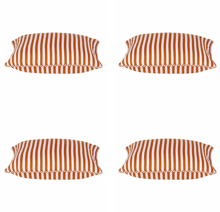 Select the right cushion covers and throws to decorate your home, either with contemporary, funky, retro or modern designs. Add texture, colour, size and shape to give your home an individual and hand selected designer look. These can be used in lounge rooms, bedrooms, caravans, a man cave, and kid’s bedrooms or anywhere you want to add some style. Even great as gifts for birthdays and Christmas.Features:Description: Pack of 4 Dandi orange cushion coverShape: SquareStyle: beach, nautical, fresh, stripedColour: orange and white.Material: CottonSize: 40cm x 40cmClosure: ZipperUses: Lounge, chair, bed, caravan or scatter cushion coverProduct may vary from batch to batch and any variations are to be accepted as part of the materials and manufacturing process. Images of goods may vary in Colour depending on the viewing device and pixels etc. Colours will vary from the internet to real life.