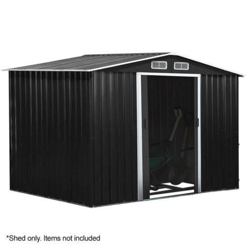 PLANTCRAFT Galvanised Steel Garden Shed 2.58 x 3.13 x 2.02m, with 2 Sliding Doors, 4 Air Vents, Gable Roof, Floor Frame
