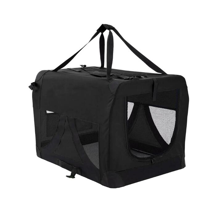Paw Mate Portable Soft Dog Cage Crate Carrier XXXL – BlackThis Paw Mate Portable Soft Pet Crate is the right item for you if you are looking for something handy and high-quality for your pet transportation! If you are just going to the supermarket, to a friend’s house or to a trip, this item will make it convenient!The soft crate is made of high-quality non-toxic 600D polyester and is highly water resistant. This makes it very strong and increases the service life. In order to keep your pet comfortable, there are mesh windows for better ventilation, anti-frying corners with 1200D fabric with high density material and a convenient to clean removable floor mat. There are side pockets as well so you can carry your pet’s toys or other items it may need during the journey. The carry handles are of high-quality and there is also a carry strap if you need your hands free! The soft crate is also foldable so if you are short in storage room, you can conveniently.This portable soft pet crate is an essential item if you love to take your pet along with you wherever you go! Come grab one of these and make your trips more convenient and more comfortable for your pet!Product Features:Made of non-toxic high quality 600D polyester so it is strong to give you a long service lifeHighly water resistant so it is easy to cleanAnti-frying corners with 1200D fabric to increase the durabilityHigh density material makes it convenient to use in many different placesRemovable floor mat for easy cleaning and machine washableMesh windows to improve ventilation and offer comfort for your petConvenient side pockets so you can carry your pet’s toys or other itemsFoldable design so storage is easyProduct Included:1x Soft Pet CrateProduct Specification:Brand: Paw MateMaterial: High Quality 600D PolyesterColour: BlackSize: XXXLDimensions: 101cm(L) x 68cm(W) x 67cm(H)Side door: 43cm(W) x 47cm(H)Top door: 76cm(L) x 33cm(W)Weight: 6.7kg