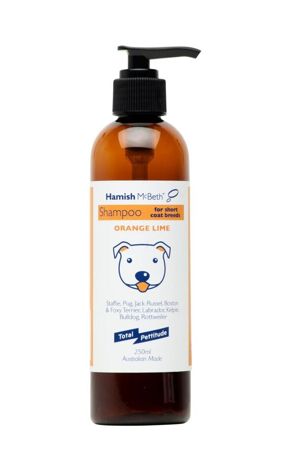 OurStaffies, Pugs, Bulldogs, Labrador, Boston Terriers and other short coat breed Shampoo is anaturally based gentle dog shampoo concentrate.A great smelling, fresh fragrance from Orange and Lime fruit and gives a deep, long-lasting freshness to the coat.Specifically formulated with a unique, naturally derived Citrus coat gloss that works to add lustre and depth to short coats. Additional naturally derived sugar emollients assist in moisturising and cleansing as well as foam stabilization.Extra Rosemary essential oil is added to provide additional anti-bacterial, antiseptic and toning effects, critical for staffiesand other short coat breeds.It is hypo-allergenic, soap, paraben phosphate free and is pH balanced, again critical for staffie and short coats.Made in AustraliaKey Features:Natural Citrus coat gloss.Rosemary essential oil.Naturally derived sugar emollients.Orange and Lime fruit extracts Concentrated formula, use only 30ml per 1 litre of water.Contains a conditioning agent.Formulated using pure deionised water.Naturally based.pH balanced.Soap Free.Free of phosphates, parabens, sulphate and enzymesBio-degradableAnimal cruelty-free – not tested on animals