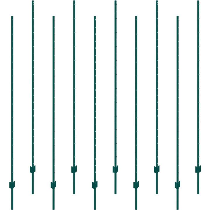 Product FeaturesSturdy & Durable Fence PostMade from 2 mm (0.08″) thick Q235 carbon steel, this fence post offers high strength and rigidity. The U-shaped channel design improves bending resistance, while the powder-coated finish provides UV protection and corrosion resistance, ensuring durability in all weather conditions.Product SpecificationsOur fence stakes are available in lengths of 7′ (213.36 cm), and each package includes 10 posts.Supportive PerformanceThe one-piece design and expert riveting create a sturdy and stable structure. The thick steel plate and U-shaped channel provide solid support, with anchor plates for added stability.Easy InstallationSimply drive the post into the ground using a hammer or post driver until the anchor plate is below the surface. Installation is quick and straightforward. Additional zip ties and metal clips are included to further secure the fence structure.Versatile ApplicationIdeal for outdoor gardening, yards, orchards, farms, vegetable plots, roadways, and green belts, this metal fence post meets various needs with its reliable performance and aesthetic appeal.