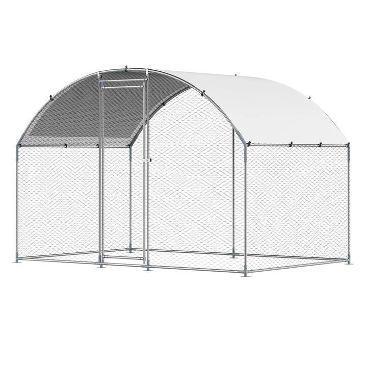 Product FeaturesWeatherproof & Corrosion-proofCrafted from galvanized steel pipes, and rigorously tested against salt spray, this large chicken coop withstands harsh weather conditions like rain, wind, and sun exposure, ensuring long-term stability and securety.Sturdy StructureWith 1″ thick galvanized steel pipes and precise welding, this chicken coops for 6 chickens boasts stability and wind resistance. The top cover facilitates effective drainage, preventing water accumulation. Reinforced with hexagonal protective mesh, it provides a securer space for the poultry.Spacious Living AreaThis chicken coop with run with a generous 9.8×6.5×6.5ft space, features four-sided ventilation, creating a healthy and comfortable environment. The PE-coated canopy provides sun protection, waterproofing, and tear resistance, shielding your poultry from external elements.Easy InstallationWith easy-to-use accessories, installation is a breeze. You can reinforce the walk in chicken coop by adding wood or stones to the bottom. For added protection against wildlife like raccoons, we recommend adding a galvanized wire fence.Versatile ApplicationThe metal chicken run is not only suitable for chickens but also for ducks, quails, rabbits, and other poultry. It meets your needs, providing a secure and comfortable living space for the poultry.