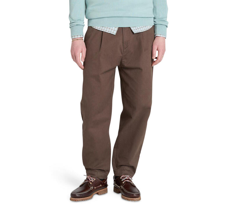 Washed Peached Twill Pleated Pant Brown