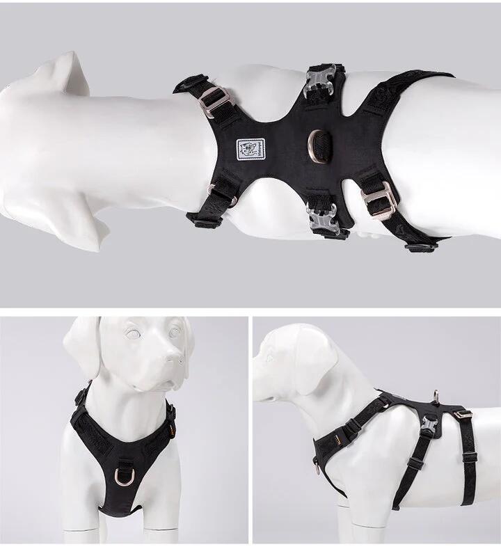 Escape Proof Dog Harness. Never let your furry friend out of your sight in the Escape Proof Dog Harness. It’s Waterproof and made from Cordura fabric which makes the harness perfect for all seasons. It has four adjustable straps and easy to take on and take off with a tough duraflex buckle. Available in three unique colours.The Harness is Waterproof and made from Cordura fabric which makes the harness perfect for all seasons.It has four adjustable straps, super easy to take on and take off with a tough duraflex buckle.Available in three unique colours.The Whinyhepet No Pull Harness features 3M reflectors to improve visibility at night. Making is Safe to walk all year round.Made out of Nylon Webbing with Neoprene padding.An easy to use aluminium Alloy D ring and a Duraflex buckle.