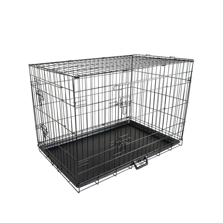 Paw Mate Wire Dog Cage Foldable Crate Kennel 30in with TrayReduce housebreaking time and help resolve barking, chewing, and behavioural problems with this collapsible dog crate!This convenient wire dog crate feature double access doors that provide easy access for your dog to easily enter and exit, as well as dual safety locks on each door to keep your pup securely inside. Built with quality sturdy wire construction with black powder-coated finish. The slide-out / removable plastic tray for easy cleaning.This collapsible wire dog crate are perfect for dogs that are constantly on the go as they require no assembly. They also set up in seconds without assemble or any tools require and fold flat for compact storage and travel.Product Features:Durable steel frames with black powder coated finish provides Long Lasting Protection and weather resistanceSimple set up in seconds without assemble or any tools requireFold flat for compact storage and travelDouble Access Doors – Front side door openingAccess Door’s Lock with Secure Lock system which can be only unlocked when it facing upwardSlide-Out / Removable plastic Tray – Easy to cleanDesign with better ventilation and air circulationSGS Approved ensured safety for your petProduct Included:1x 30in Dog CrateProduct Specification:Brand: Paw MateColour: BlackMaterial: Steel FrameFinishing: Powder CoatedCrate Dimension: 77cm(30in) x 48cm x 55cm (L x W x H)Fold up Dimension: 77cm(30in) x 48cm x 9cm (L x W x H)Front Door Dimension: 33cm x 41cm (W x H)Side Door Dimension: 33cm x 38cm (W x H)Bar distance: 3.5cmWeight: 7.1kg