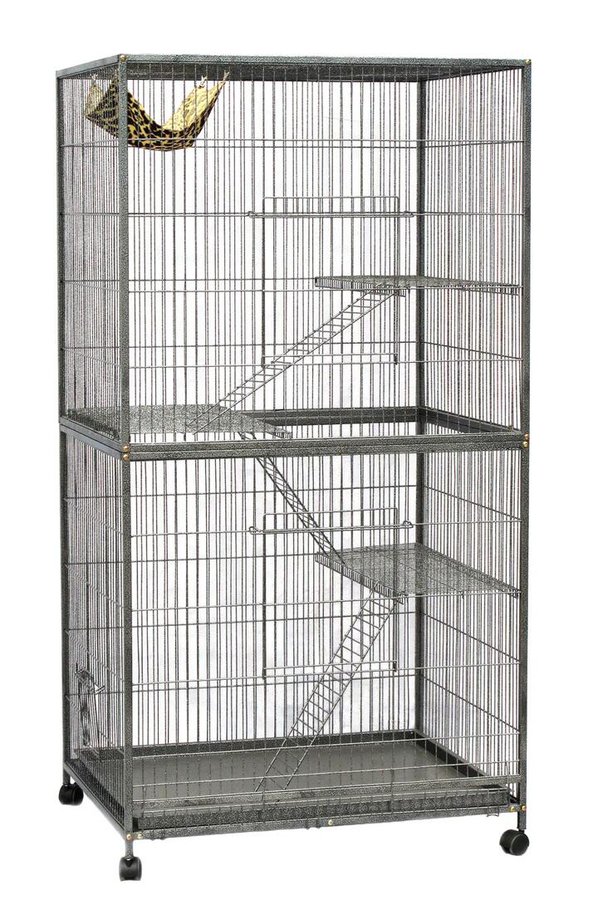YES4PETS 180 Cm Parrot Cat Ferret Hamster Rat Bird Aviary CageThis fantastic, spaciousmulti-level animal Cage is definitely the most comfortable roost for your little one. Our cage is made of wrought ironwith vein powder coating so it is tough and durable. The dimension of this cage is 93cm x 75cm x 180 cm, which provides sufficient space and multi-area for your pets. This brand new multi-level ferret cage is in black vein, and 3removable platforms, 3removable ladders, and a funky hammock for rest and relaxation. The locks at the bottom of the cage secure animal from being escaped. In this package, it includes 4 smooth castor wheels which provide great mobility.Features:* 4Levels Animal Cage* Heavy Duty Frame and Mesh* Durable Vein Powder Coating* Easy for assembly* Slide-out Tray for easy cleaning* Locks at the bottom secure animal* 3 Platform + 3 Ladders* 1 Comfortable Hammock* 2 x Large access door 1 small access door* 4 coaster wheels for movement* Overall Cage Dimension : about 93cm (L) x 75cm (W) x 180 cm (H)* Bar Spacing: about 2.5cm approx.* Colour: Silver mixed BlackPackage Contents:* 1 x Ferret CageExtra platforms and ladders are available for sale, please reach usor check other listings in our store.Please note:Not intended for use on a rainy day. Water may cause rust and the rust is not covered by warranty.COM (change of mind) Return Policy:Products must be returned within 14 days from the date of delivery.The product must be unopened and in brand new condition, with the return to be organised by the customer. Once received and verified to be in the condition specified, refund is only of the item value minus 15% restocking fee (not including initial shipping). An additional return charge, which is same or exceeding cost as that of initial shipping, will be deducted from the refund on returns due to delivery failure caused by customer error.